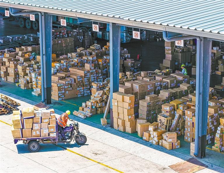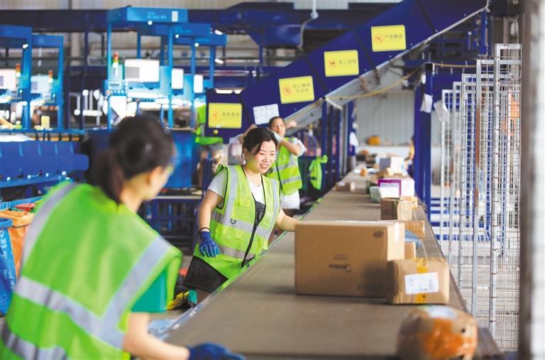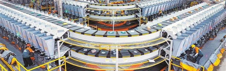 ▲6月18日,重庆市武陵现代物流园区快递分拨中心,工作人员在智能快递分拣流水线上忙碌。当日,各类电商平台“618”年中促销活动开启,快递物流业务迎来收寄高峰期。胡 程摄(中经视觉)