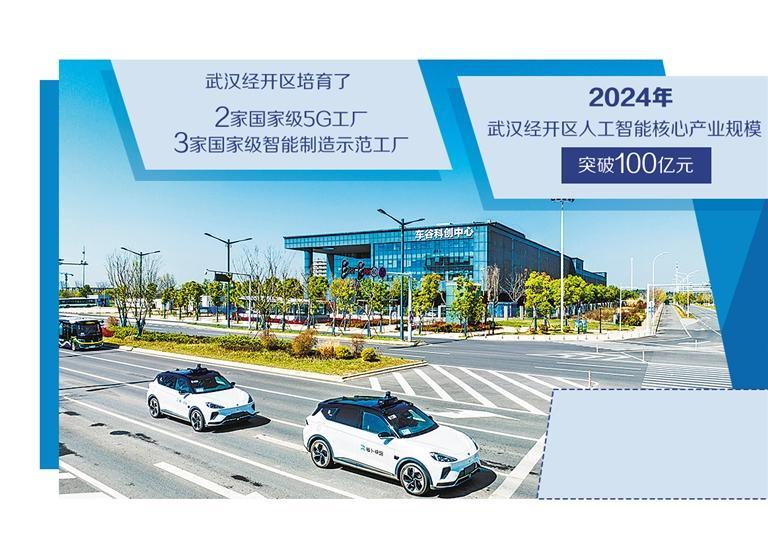 近年来,武汉经开区深入实施“人工智能+”行动,以智能网联汽车为主线,造“聪明的车”、修“智能的路”、建“智慧的云”,初步形成覆盖硬件、软件、算力、大模型等各链条、各环节的人工智能产业生态。去年,该区人工智能核心产业规模突破100亿元,占全市比重20%,稳居武汉人工智能产业“第一方阵”。
