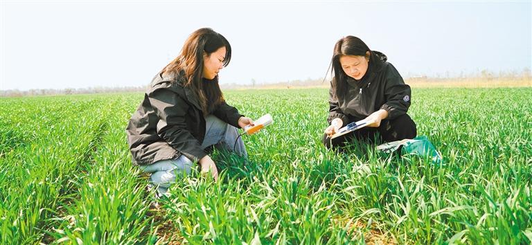 ▼4月9日,黄骅市旧城镇仙庄片区旱碱麦田,市农技推广站技术人员在测试土壤湿度。当地利用智慧农业四情监测系统,为小麦的施肥、灌溉、虫害防治提供科学指导。