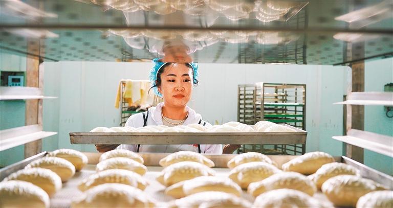 ▼4月8日,位于黄骅市的河北银海农业科技有限公司员工在搬运“面花”。旱碱麦营养丰富,制作的馒头、“面花”麦香浓郁、绵软筋道。印刻有寓意吉祥图案的黄骅“面花”制作技艺,被列为省级非物质文化遗产名录。