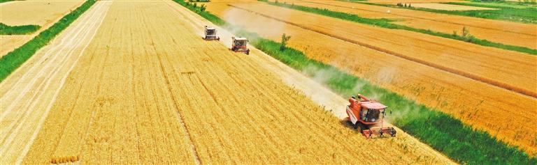 ▶6月10日,河北省黄骅市常郭镇李子札村,联合收割机在收割旱碱麦。今年,沧州市184.98万亩旱碱麦喜获丰收,面积、单产、总产同比均大幅增长。