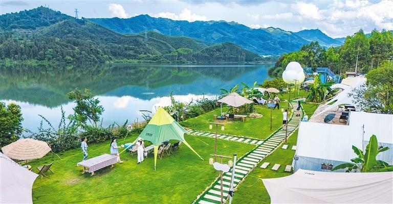 6月23日,广西壮族自治区贺州市平桂区鹅塘镇华山村的一处露营基地,游客在休闲游玩。近年来,当地依托良好的生态资源,积极发展房车营地、星空露营基地、乡村特色民宿等旅游产业,带动群众就业增收。黎豪图摄(中经视觉)