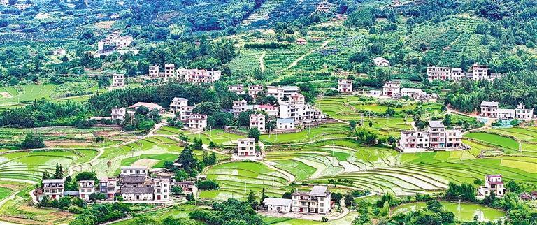 6月24日,江西省赣州市崇义县铅厂镇,梯田与山林、房舍构成一幅生态乡村画卷。近年来,崇义县大力开展环境整治,发挥梯田、竹海、村落等原生态景观功能,带动乡村走上“景村融合、以旅促农”的振兴之路。
