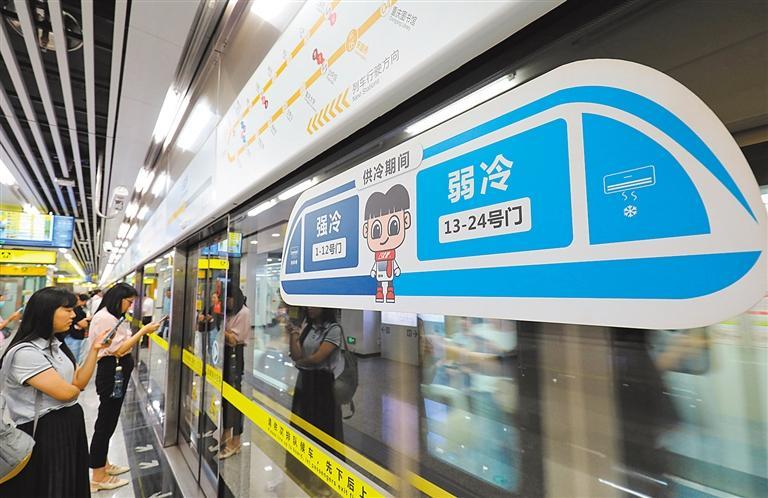 ▲6月19日,重庆市沙坪坝区一轨道交通车站内张贴着醒目的车厢温度提醒标识。目前,重庆轨道交通线路全面推行“双温车厢”服务,在满足不同乘客冷暖需求的同时降低空调能耗。