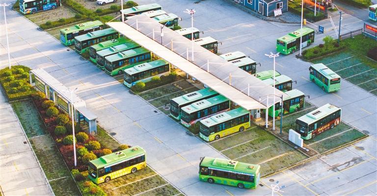 ▼6月16日,安徽省芜湖市繁昌区繁昌慢谷游客中心客运站,新能源公交车在充电。近年来,该区累计更新新能源公交车131辆,实现城乡新能源公交车全覆盖。肖本祥摄(中经视觉)