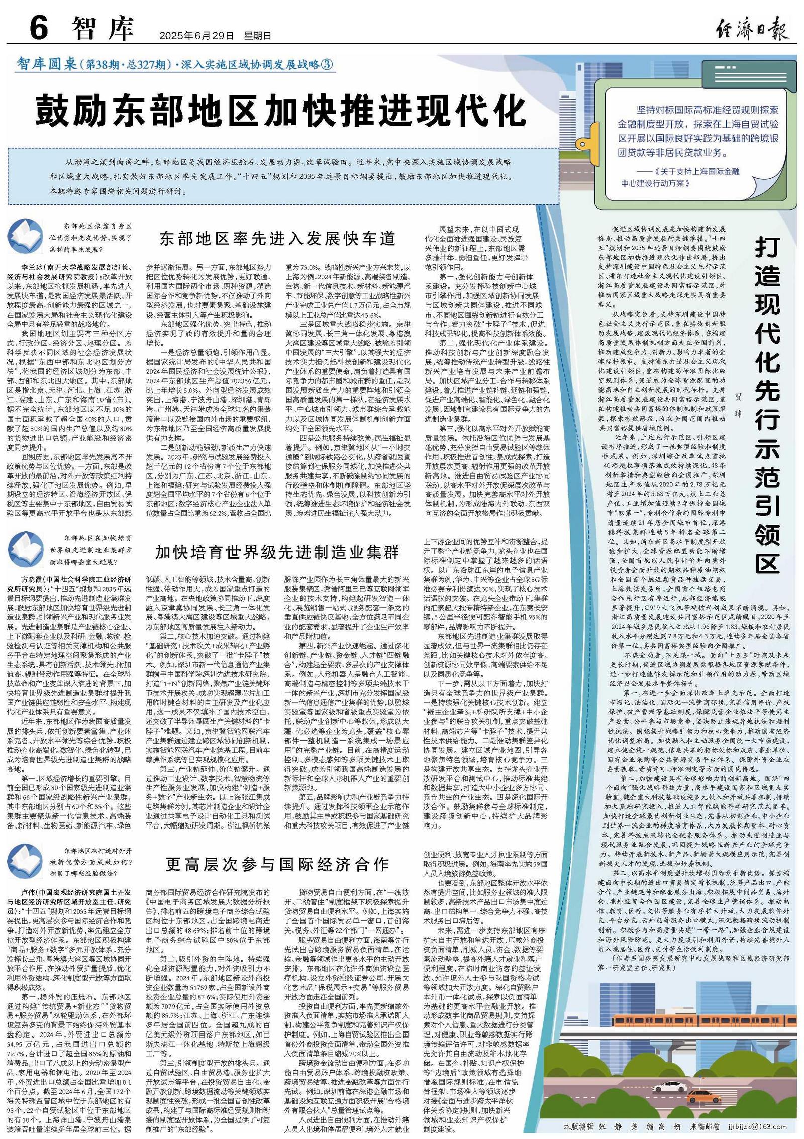 促进区域协调发展是加快构建新发展格局、推动高质量发展的关键举措。“十四五”规划和2035年远景目标纲要围绕鼓励东部地区加快推进现代化作出部署,提出支持深圳建设中国特色社会主义先行示范区、浦东打造社会主义现代化建设引领区、浙江高质量发展建设共同富裕示范区,对推动国家区域重大战略走深走实具有重要意义。