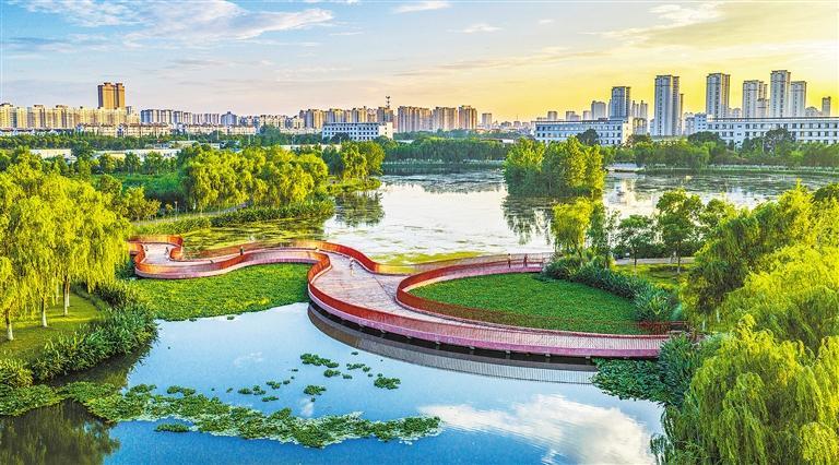 6月28日,雨后天晴,江苏省宿迁市泗洪县大楼街道尾水湿地公园美如画卷。近年来,当地大力推进生态环境治理,在污水处理厂旁建成尾水湿地公园,既净化水质,又为市民打造休闲场所。