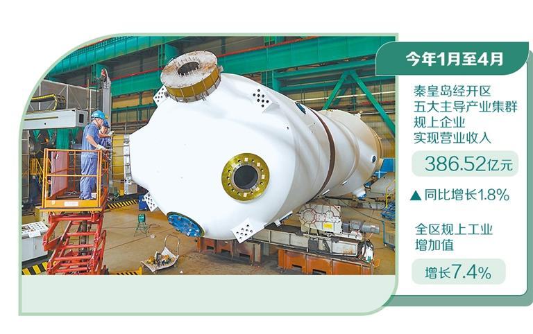 秦皇岛经开区是1984年经国务院批准设立的全国首批、河北首家国家级经开区。连接华北与东北,紧临渤海,有成熟的码头和综合保税区,产品运输及进出口通道畅通,区位优势及便利交通吸引装备制造企业汇集于此。近年来,秦皇岛经开区不断壮大新能源及智能装备制造、汽车及零部件、粮油食品精深加工、精密电子信息技术及智慧消防、生物制造及康辅医疗产业五大主导产业,构建现代产业体系,打造制造产业新高地。今年1月至4月,其五大主导产业集群规上企业实现营业收入386.52亿元,同比增长1.8%;全区规上工业增加值增长7.4%。