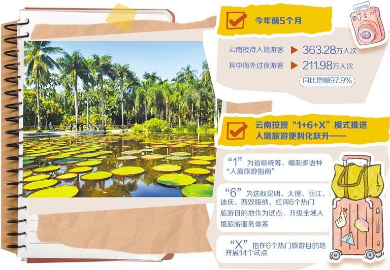 “按照‘1+6+X’模式推进入境旅游便利化跃升。”申玮介绍,“1”为省级统筹,编制多语种“入境旅游指南”;“6”为选取昆明、大理、丽江、迪庆、西双版纳、红河6个热门旅游目的地作为试点,升级全域入境旅游服务体系;“X”指在6个热门旅游目的地开展14个试点,比如在昆明机场、丽江古城、西双版纳告庄等地实现“五个一”标准服务(一处多语种咨询中心、一本《海外游客服务手册》、一组智能翻译设备、一个便捷支付场景、一个通信服务点)。