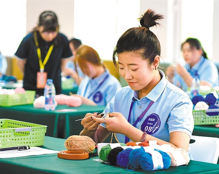 6月21日,内蒙古自治区呼和浩特市举办服装服饰行业职业技能竞赛,选手在钩针编织项目比赛中。