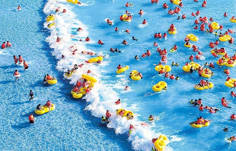 7月5日,游客在山西省运城市闻喜县一家水上乐园戏水,享受清凉。常 奇摄(中经视觉)