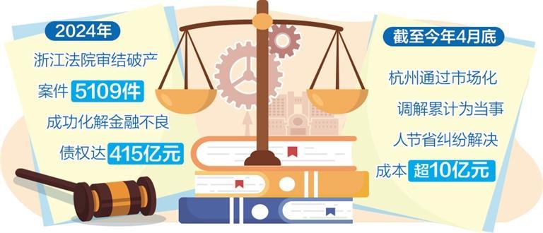 近年来,浙江法院加力出清市场风险,准确识别重整价值。据介绍,2024年,浙江法院审结破产案件5109件,成功化解金融不良债权达415亿元。