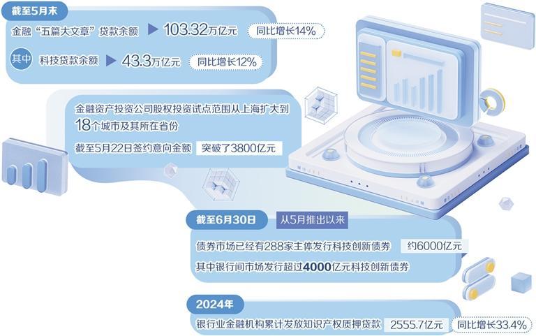 7月14日,中国人民银行调查统计司司长闫先东在国新办新闻发布会上表示,截至5月末,金融“五篇大文章”贷款余额103.32万亿元,同比增长14%;其中,科技贷款余额43.3万亿元,同比增长12%。发展科技金融是促进科技与产业深度融合,推动科技型企业发展的必由之路。今年以来,中国人民银行、国家金融监督管理总局等部门出台新的政策和创设新的政策工具支持科技型企业创新,不断加大信贷供给和强化多元服务,拓宽科技型企业多元融资路径,全力推动新质生产力发展。