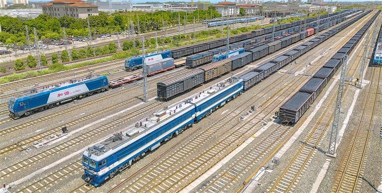 7月16日,位于重庆市沙坪坝区的铁路兴隆场编组站,货运列车满载煤炭驶出编组站。入夏以来,电力需求激增。国铁成都局兴隆场车站优化电煤运输流程,加速车辆流转,确保发电用煤供应充足,为电力稳定供应提供有力支持。