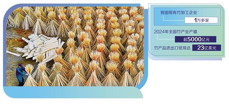 依托丰富的竹资源和产业加工基础,我国各地竹产区着力推动全链条、全要素协调发展,初步构建起品类齐全、业态丰富、特色鲜明的竹产业体系。据统计,我国现有竹加工企业1万多家,2024年全国竹产业产值超5000亿元,竹产品进出口贸易达23亿美元。