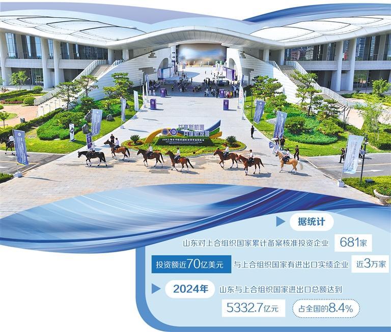 近年来,山东积极服务和融入国家开放大局,加快与上合组织国家开展地方经贸交流。据统计,山东对上合组织国家累计备案核准投资企业681家、投资额近70亿美元,与上合组织国家有进出口实绩企业近3万家,去年与上合组织国家进出口总额达到5332.7亿元,占全国的8.4%;中欧班列开往上合组织国家33个城市,累计开行1.2万列。