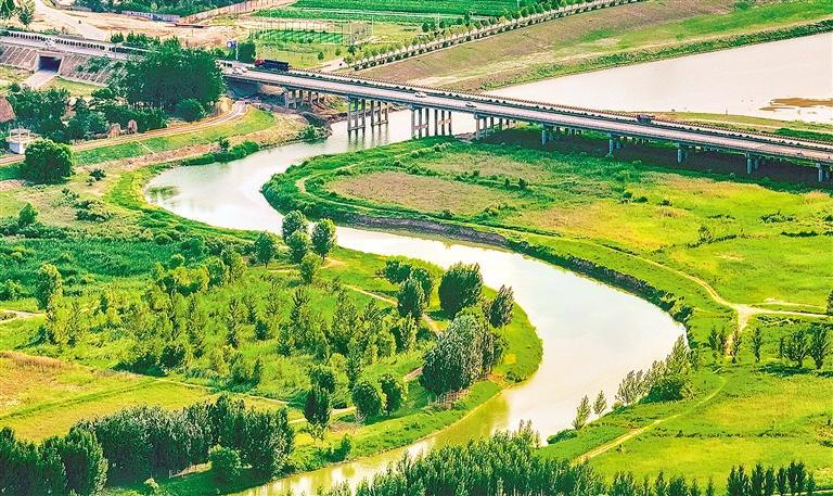 7月23日,山西省运城市稷山县,汾河两岸绿意浸染。近年来,稷山县通过对汾河河道清淤疏浚、两岸绿化美化等一系列举措,改善了汾河水生态环境,提升了区域人居环境质量。