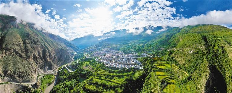 7月19日拍摄的山南市洛扎县拉康镇民居。近年来,全县2535名农牧民入住小康新居,生活环境得到极大改善。