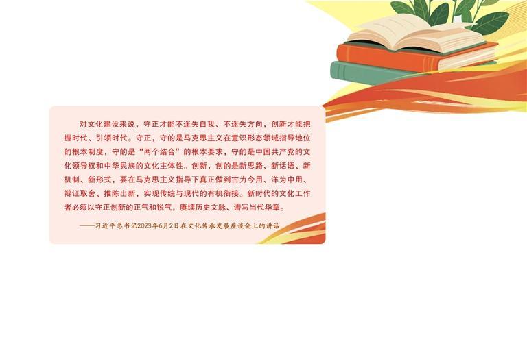 文化是最需要创新的领域,文化繁荣发展的强大动力在于与时俱进。坚持党的文化领导权,必须坚持在实践创造中进行文化创造、在历史进步中实现文化进步。立足中华民族伟大历史实践和当代实践,善于从中汲取智慧和力量,始终保持与人民同频、与时代共振,持续推进实践创新基础上的文化创新,以创新增强文化发展动力、激活文明进步源泉,不断创造出跨越时空、超越国度、富有永恒魅力、具有当代价值的文化成果。在推动创新的同时,还需坚持守正,把握好社会主义文化发展的正确方向。守正才能不迷失自我、不迷失方向,创新才能把握时代、引领时代。
