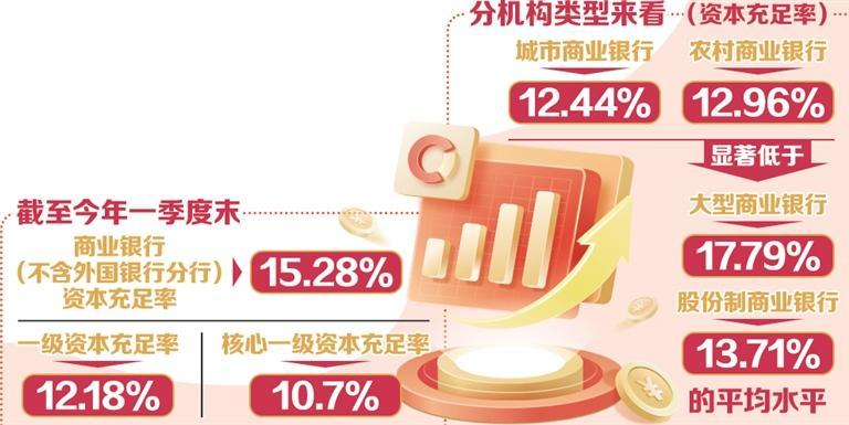 与国有大型银行相比,中小银行资本补充渠道较窄。数据显示,截至今年一季度末,商业银行(不含外国银行分行)资本充足率为15.28%,一级资本充足率为12.18%,核心一级资本充足率为10.7%。分机构类型来看,城市商业银行、农村商业银行的资本充足率分别为12.44%、12.96%,显著低于大型商业银行17.79%和股份制商业银行13.71%的平均水平。