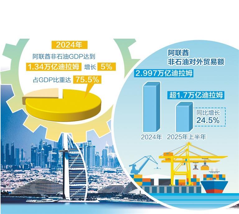 近年来,阿联酋日益重视可持续发展,积极推动经济多元化,以摆脱对石油经济的依赖,通过制定“阿联酋2021愿景”“我们阿联酋2031”愿景以及“阿联酋2071百年计划”等长期战略,为非石油经济发展提供了清晰的路线图和政策指引。同时,通过实施外资所有权、黄金签证等营商环境改革等,使非石油经济对其国内生产总值(GDP)的贡献率持续提升。