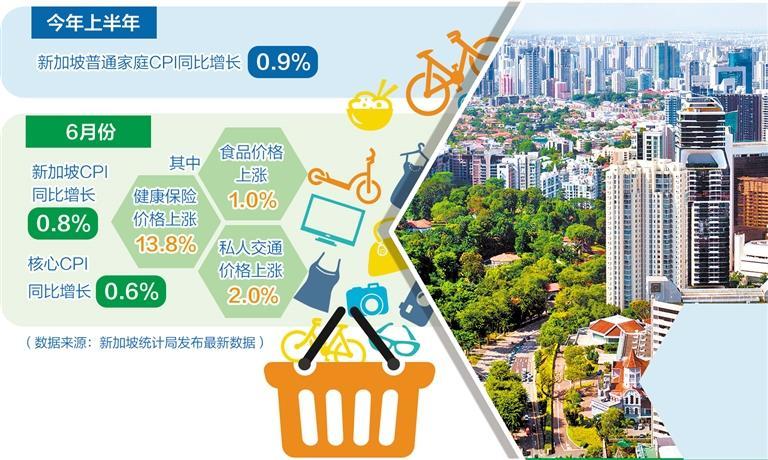 新加坡今年6月的CPI数据可显示出更为详细的价格动态。数据显示,今年6月新加坡CPI同比增长0.8%。在各个支出类别中,食品、健康保险和交通等继续推动CPI上涨,而服装、家庭耐用消费品及服务等类别则出现价格下降。具体来看,食品价格同比上涨1.0%,其中,食品及饮料服务价格上涨1.1%。新加坡食品零售商协会的数据显示,由于部分进口食品供应链得以优化,叠加本地农业技术提升带来的部分农产品供应增加等,都在一定程度上控制了食品价格上涨的幅度,但人工成本和包装材料价格的上升,仍然使食品及饮料服务价格保持上涨态势。另外,健康保险价格上涨13.8%,私人交通价格上涨2.0%,这主要是受到汽车价格上涨,以及油价波动的综合影响。