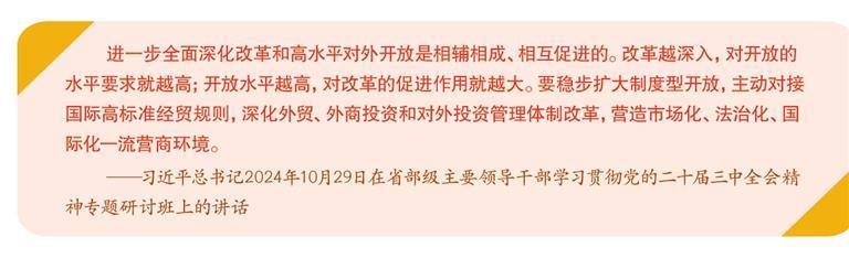 党的二十届三中全会通过的《中共中央关于进一步全面深化改革、推进中国式现代化的决定》,对优化营商环境作出了新的部署,提出了一系列重点举措和战略安排。概括而言,一流的营商环境,要兼具市场化、法治化和国际化特征。其中,打造国际化的营商环境,一般来讲,是强调加快国内制度规则与国际接轨,通过优化管理体制、扩大市场准入、完善服务保障,实现营商环境更为开放包容。而开放是中国式现代化的鲜明标识,以开放促改革、促发展是我国现代化建设不断取得新成就的重要法宝。因时顺势,持续营造国际化一流营商环境,加快建设更高水平开放型经济新体制,是加快塑造国际竞争合作新优势的必然要求。可以说,开放与打造国际化营商环境是内在统一、相互成就的。