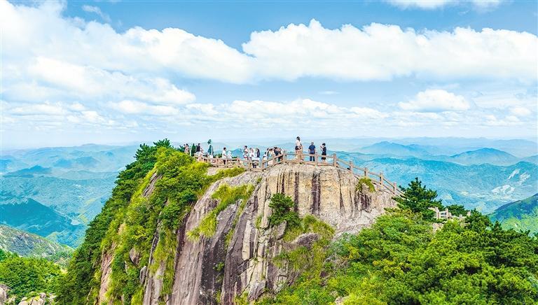 8月14日,游客在安徽省池州市九华山风景区花台景区游玩。立秋之后,气温宜人,多地景区游人如织。何 清摄(中经视觉)