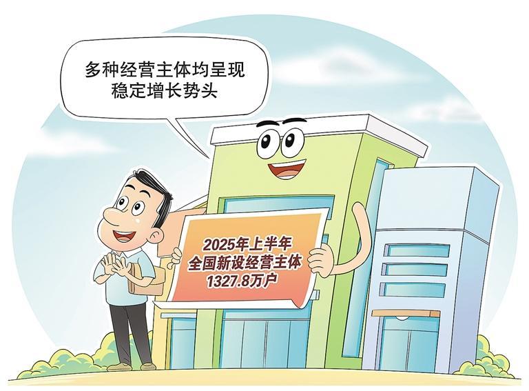 市场监管总局数据显示,今年上半年,全国新设经营主体1327.8万户。其中,新设企业462万户,新设个体工商户862.9万户,新设农民专业合作社2.9万户,多种经营主体均呈现稳定增长势头。近来惠企政策的加快落地,为多种经营主体量质齐升提供了强劲动力,助力其规模再上新台阶。经营主体是经济运行的细胞,是推动经济高质量发展的活力源泉。接下来,需持续优化营商环境,根据不同经营主体的需求及特点,深化“放管服”改革,增强经营主体信心,精准落实惠企政策,推动政策红利直达快享。进一步完善市场准入退出制度,严格落实“全国一张清单”管理模式,全面落实《公平竞争审查条例》,并对新业态新模式实施包容审慎监管,给经营主体更大发展空间。(时 锋)