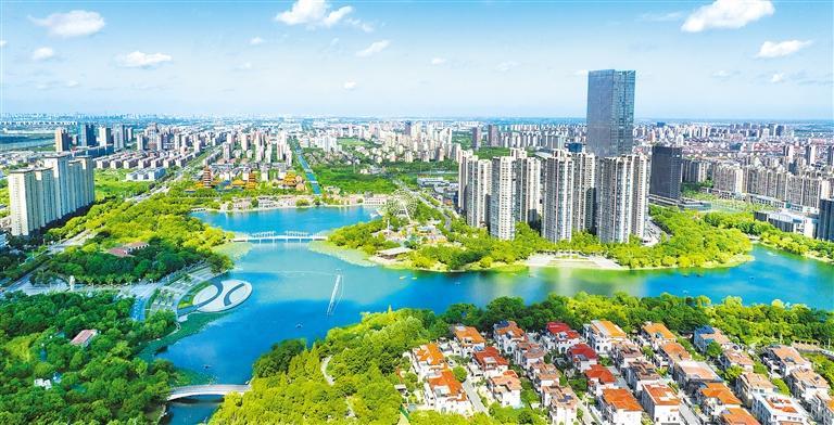 8月14日,江苏省南通市通州区南山湖公园水清岸绿,景色宜人。近年来,通州区推进城区水环境治理与生态修复,打造河畅、水清、岸绿、景美的生态环境,努力实现人与自然和谐共生。