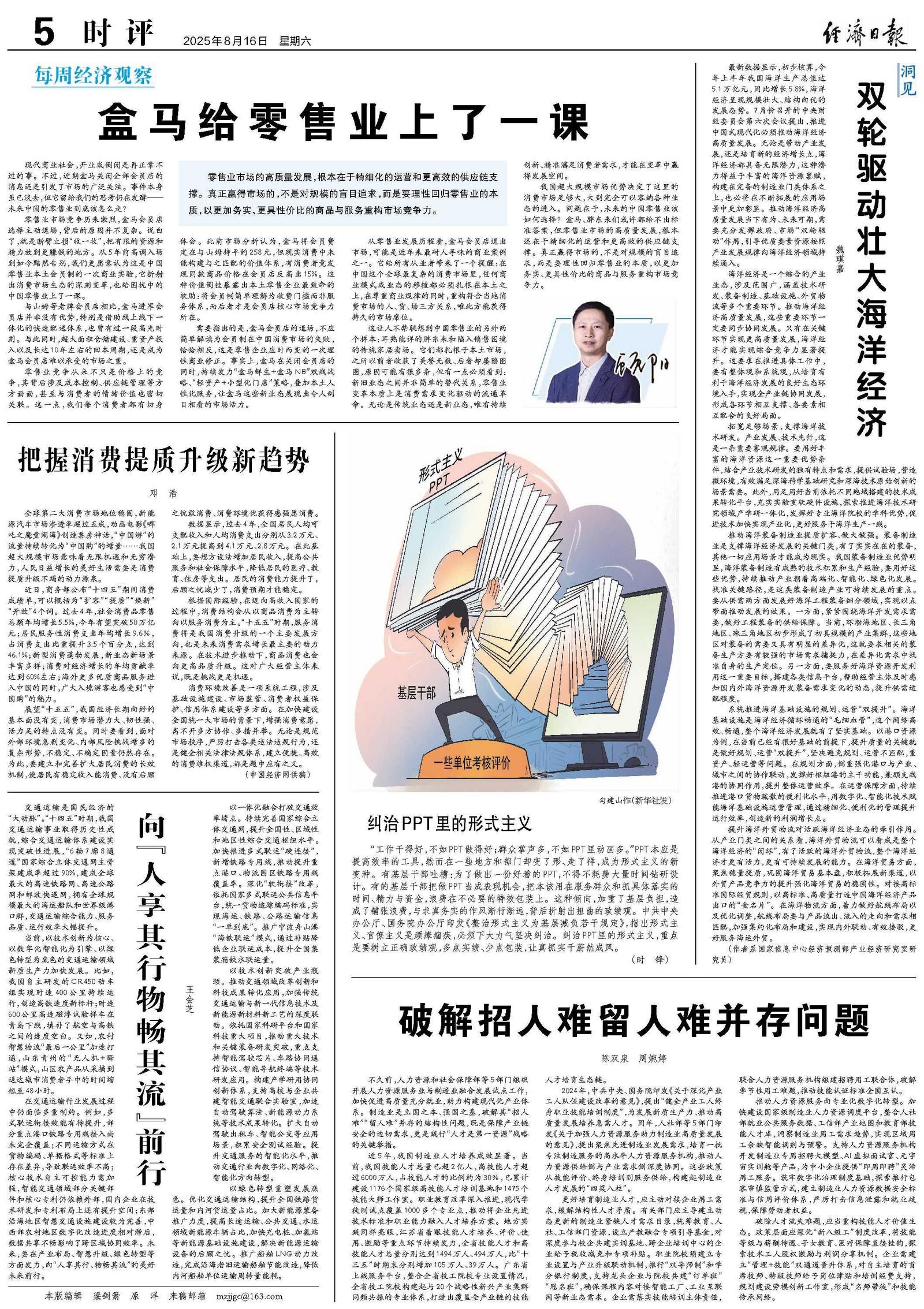 以一体化融合打破交通效率堵点。持续完善国家综合立体交通网,提升全国性、区域性和地区性综合交通枢纽水平。加快推进多式联运“硬连接”,新增铁路专用线,推动提升重点港口、物流园区铁路专用线覆盖率。深化“软衔接”改革,依托国家多式联运公共信息平台,统一货物追踪编码标准,实现海运、铁路、公路运输信息“一单到底”。推广宁波舟山港“海铁联运”模式,通过补贴降低企业联运成本,提升全国集装箱铁水联运量。