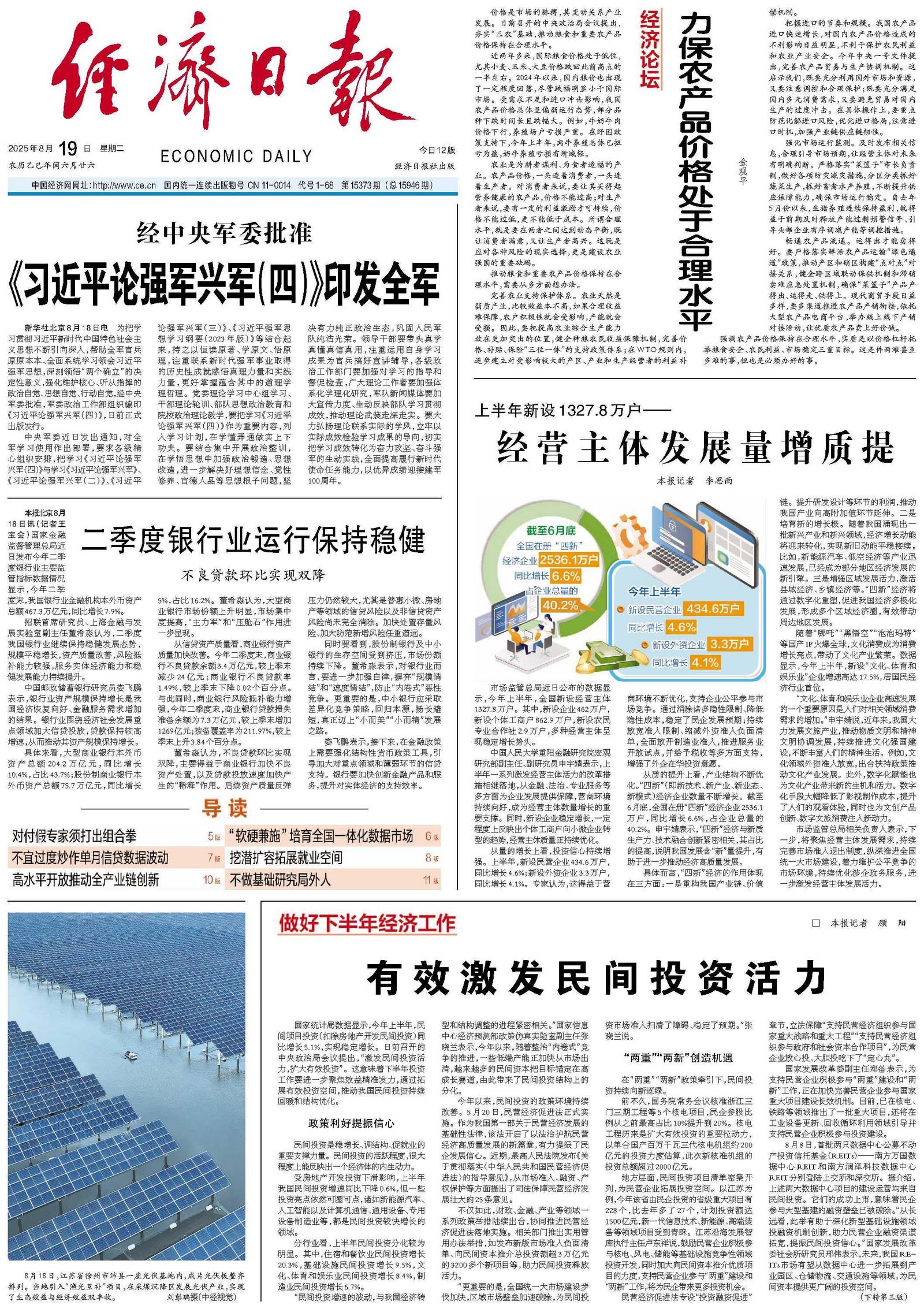 存量政策协同发力,增量政策加快落地。国家发展改革委民营经济发展局有关负责人表示,下半年,将继续从法治保障、投资激励、政策环境、创新驱动等方面,进一步激发民间投资动力和活力。