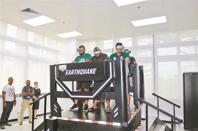 移步台风体验室,8级模拟风力瞬间掀起衣角,模拟雷电噼啪作响,地面轻微晃动带来的眩晕感让现场嘉宾不禁抓紧扶手。“这和台风登陆时的感觉太像了。”曾亲历灾害的嘉宾代表感慨道。