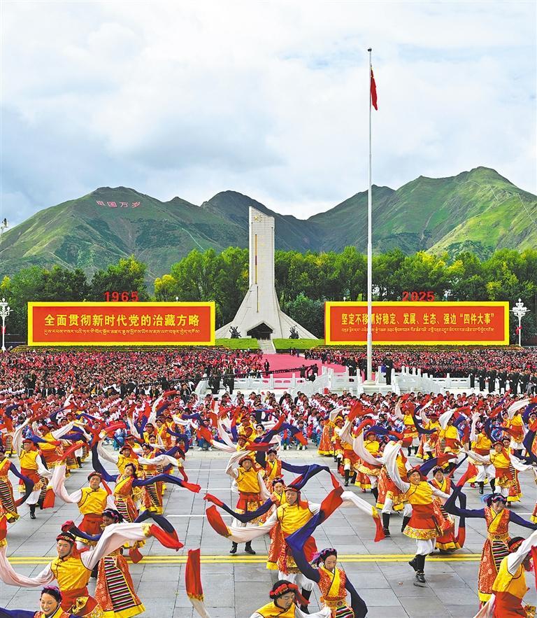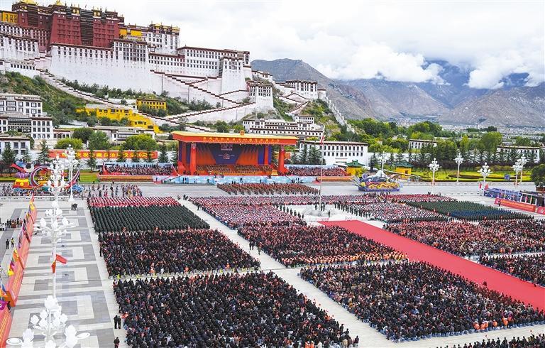 图⑦ 8月21日上午,西藏各族各界干部群众约2万人欢聚拉萨市布达拉宫广场,热烈庆祝西藏自治区成立60周年。这是庆祝大会现场。索朗旺久摄(新华社发)