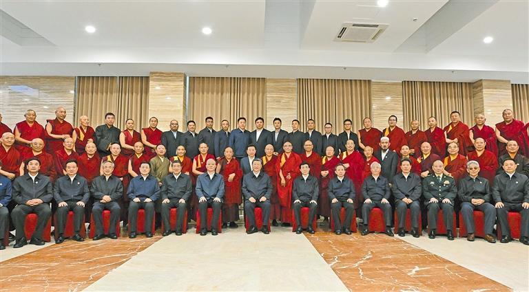 图⑥ 8月20日下午,中共中央总书记、国家主席、中央军委主席习近平在拉萨亲切接见西藏自治区宗教界爱国人士和寺管会干部代表,并同大家合影留念。