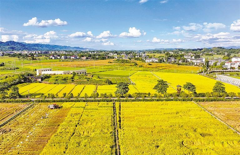 8月20日,重庆市垫江县沙坪镇毕桥村制种水稻示范基地,农机穿梭在稻田间抢收水稻。近年来,沙坪镇在毕桥村打造高标准农田,推动制种水稻统一技术、统一管理、统一加工和销售,有效促进农业增效和农民增收。龚长浩摄(中经视觉)
