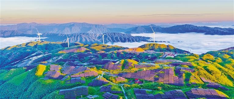 8月25日,贵州省黔东南苗族侗族自治州锦屏县固本乡青山界的山顶上,光伏太阳能电池板和风电机组与远山相映成景。近年来,当地积极发展“风光互补”的清洁能源产业,打造经济新增长点。