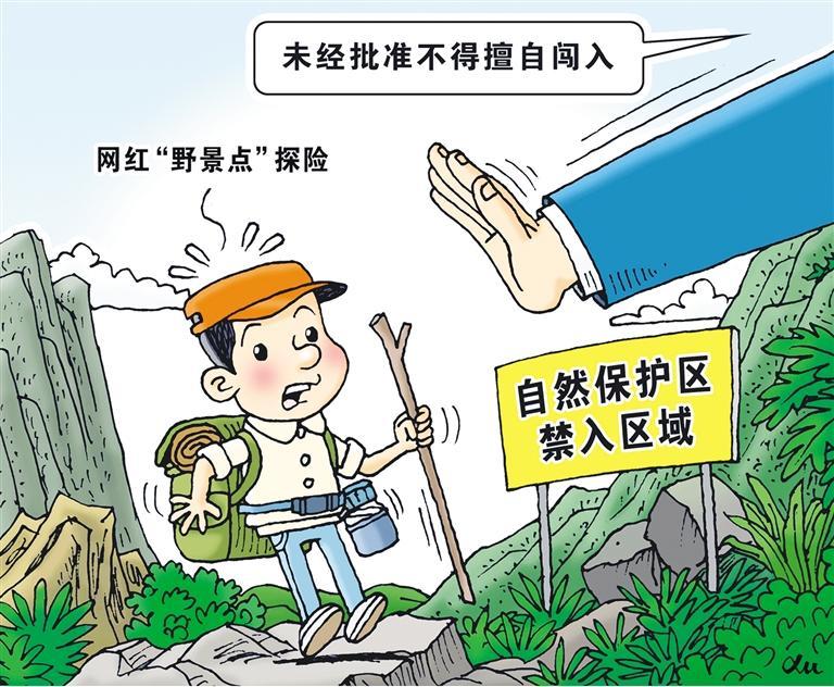 近期,多地发生游客到网红“野景点”游玩遇险遇难事件——有的进入未开发开放的荒郊野岭露营遭遇山洪,有的擅闯自然保护区禁入区域遇险。不少“野景点”在社交媒体上颇受追捧,有的社交博主甚至诱导游客绕开管制违规进入,由此引发了大量事故。“野景点”的走红,折射出人们对原生态探险的向往,但背后隐藏的安全、生态和管理困境,已成为亟待破解的难题。对此,要疏堵结合守护生命与生态红线。对具备开发条件的景区,加强基础设施建设、完善社会公共服务,回应公众文旅需求,并把安全放在第一位。通过短视频等渠道加强宣传教育,提高民众安全意识,普及相关法律法规和安全知识。此外,还要探索完善执法与惩戒机制。(时 锋)