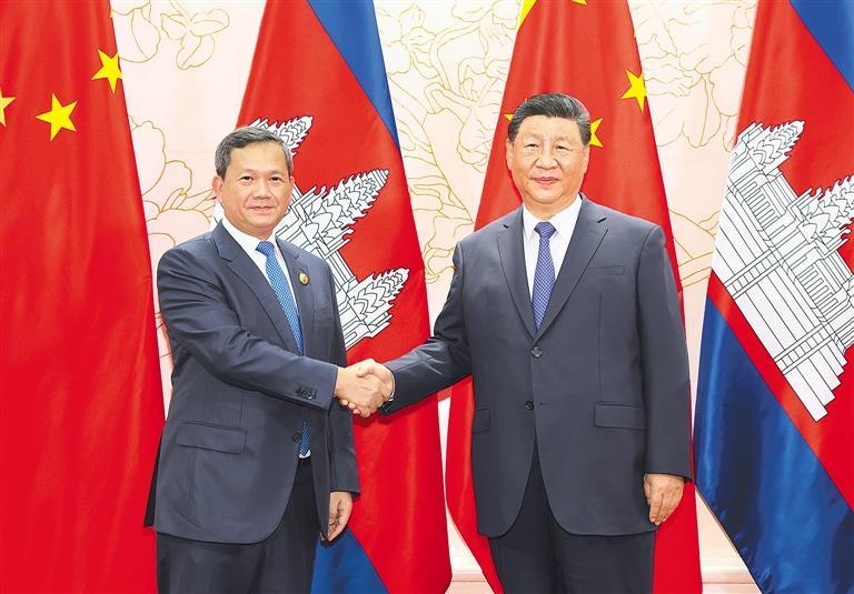 习近平强调,中方支持柬方维护国家稳定,坚持独立自主,实现发展振兴。愿发挥中柬政府间协调委员会作用,同柬方深化“钻石六边”合作,统筹推进“工业发展走廊”和“鱼米走廊”建设,扩大贸易往来,增强柬方自主发展能力。双方要严打网赌电诈等跨境犯罪,维护两国人民生命和财产安全。