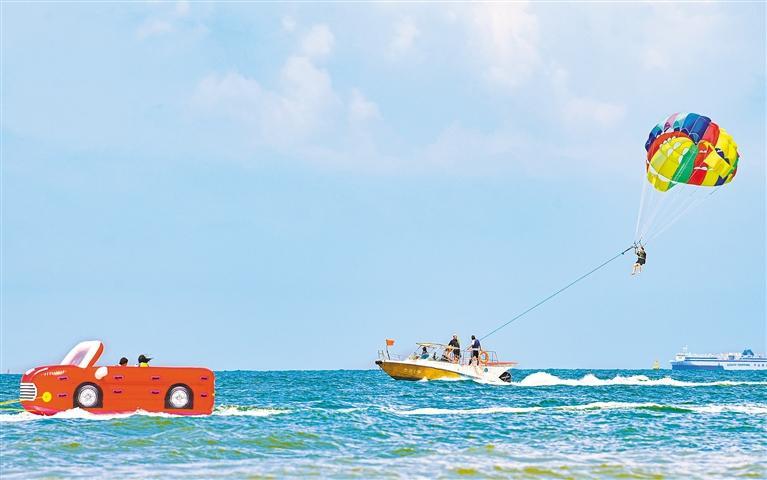 8月11日,游客在广西壮族自治区北海市银滩景区游玩。