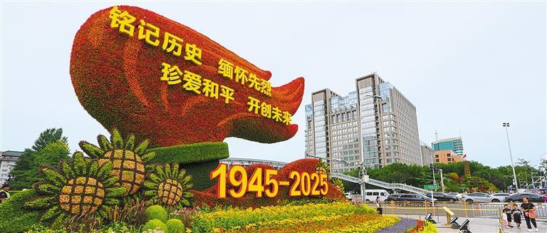近日,人们在北京东单参观“薪火相传”花坛。中国人民抗日战争暨世界反法西斯战争胜利80周年纪念活动期间,长安街沿线以“铭记历史、缅怀先烈、珍爱和平、开创未来”为主题,从建国门至复兴门布置10组立体花坛。