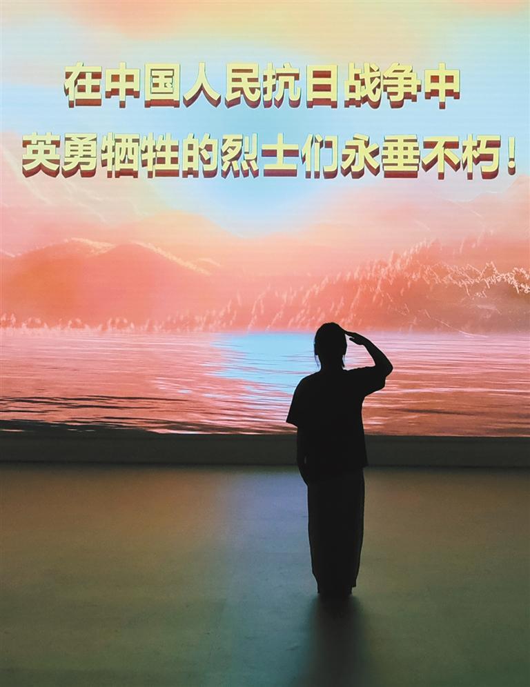 8月29日,小朋友向抗日英雄致敬。此次展览设置了“弘扬伟大抗战精神 深切缅怀抗战英烈”专区,吸引观众在互动区域鞠躬、敬礼,表达对英烈的缅怀之情。本报记者 朱双健摄