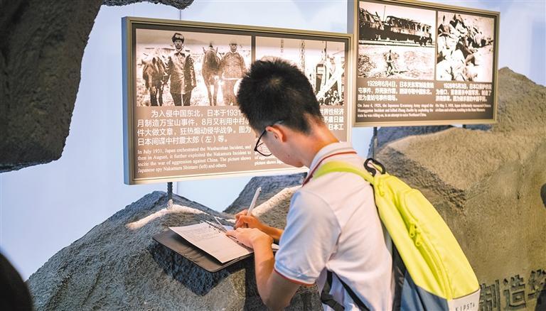 8月29日,在纪念馆内记录历史的小观众。本报记者 朱双健摄