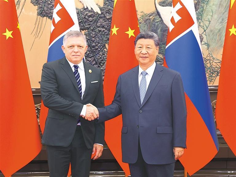 习近平强调,中方高度赞赏斯洛伐克坚持对华友好,愿同斯方密切高层交往,坚定支持彼此选择的发展道路,加强治国理政经验交流,不断深化政治互信。积极推进新能源、基础设施、物流等务实合作,促进人文交流,为两国人民带来更多福祉。希望斯方继续为推动中欧关系健康稳定发展发挥积极作用。