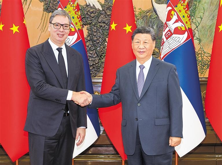 习近平强调,塞尔维亚是第一个同中国共建新时代命运共同体的欧洲国家,充分体现了两国关系的特殊性和高水平。作为铁杆朋友,中方支持塞方维护国家利益和社会稳定,走出一条符合自身国情的成功发展道路。双方要加强发展战略对接,用好自由贸易协定及互免签证、直航等便利化安排,深化人工智能、数字经济、新能源等领域合作,推动中塞关系不断向前发展。