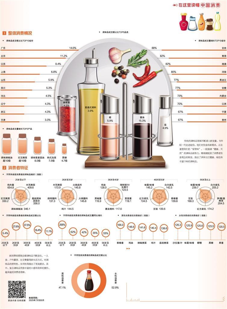 五味调和,百味生香。调味是饮食文化的灵魂,若调味失当,再好的食材也难成佳肴。如今,厨房里正经历一场味觉升级:调味辣椒油、豇豆腌菜、葱姜蒜复合油等销量快速增长、持续攀升。