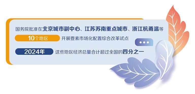 本次开展要素市场化配置综合改革试点包括北京城市副中心、江苏苏南重点城市、浙江杭甬温、安徽合肥都市圈、福建福厦泉、河南郑州市、湖南长株潭、广东粤港澳大湾区内地九市、重庆市、四川成都市10个地区。2024年,上述地区经济总量合计超过全国的四分之一。