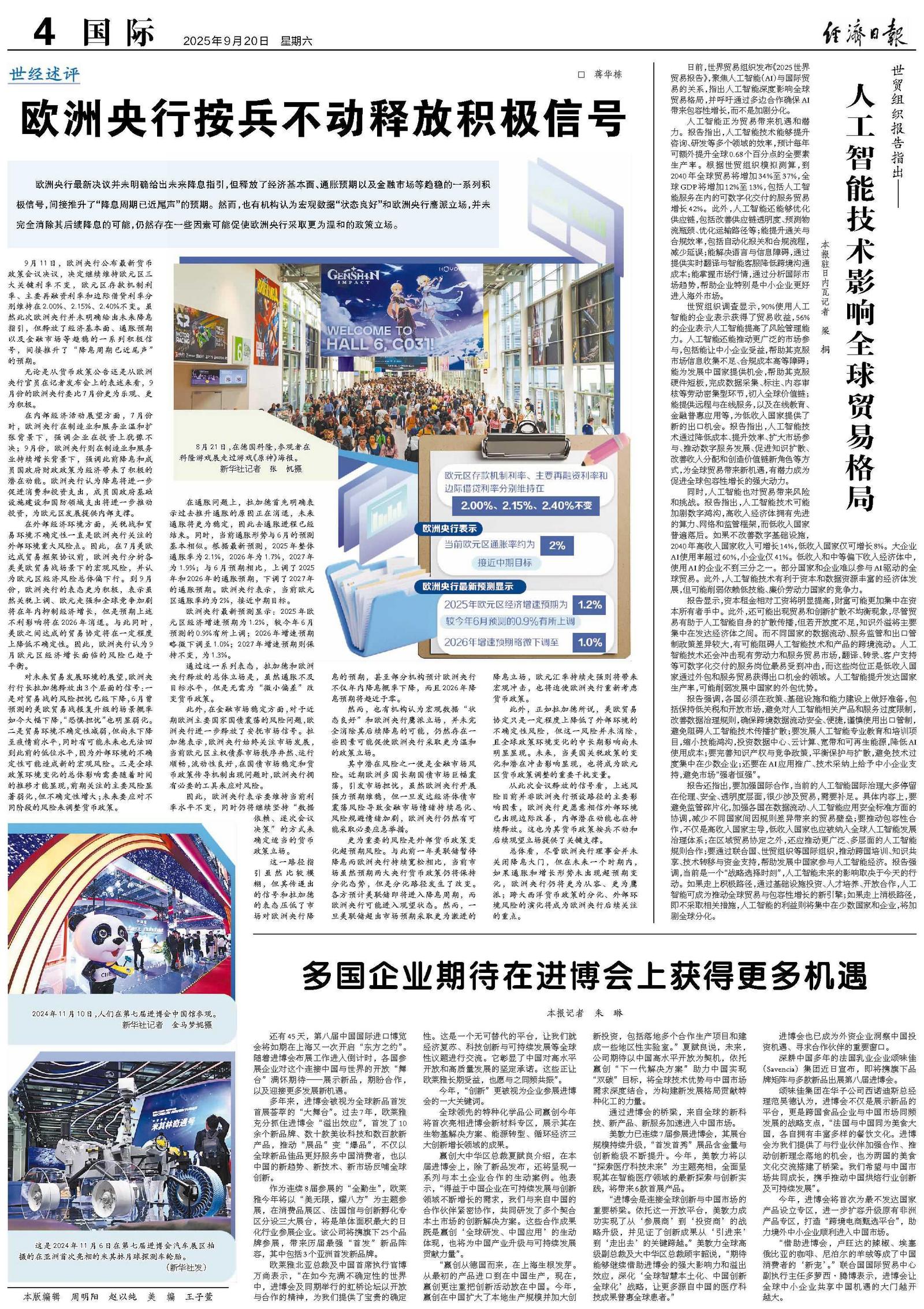 日前,世界贸易组织发布《2025世界贸易报告》,聚焦人工智能(AI)与国际贸易的关系,指出人工智能深度影响全球贸易格局,并呼吁通过多边合作确保AI带来包容性增长,而不是加剧分化。