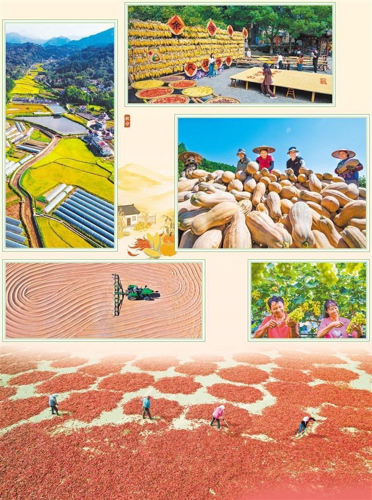 9月22日,安徽安庆市岳西县响肠镇千佛塔村,金黄的稻田与错落分布的民居、蔬果大棚相映成趣。9月23日是秋分节气,也是我国第八个“中国农民丰收节”,大江南北到处洋溢着丰收的喜悦。吴均奇摄(中经视觉)