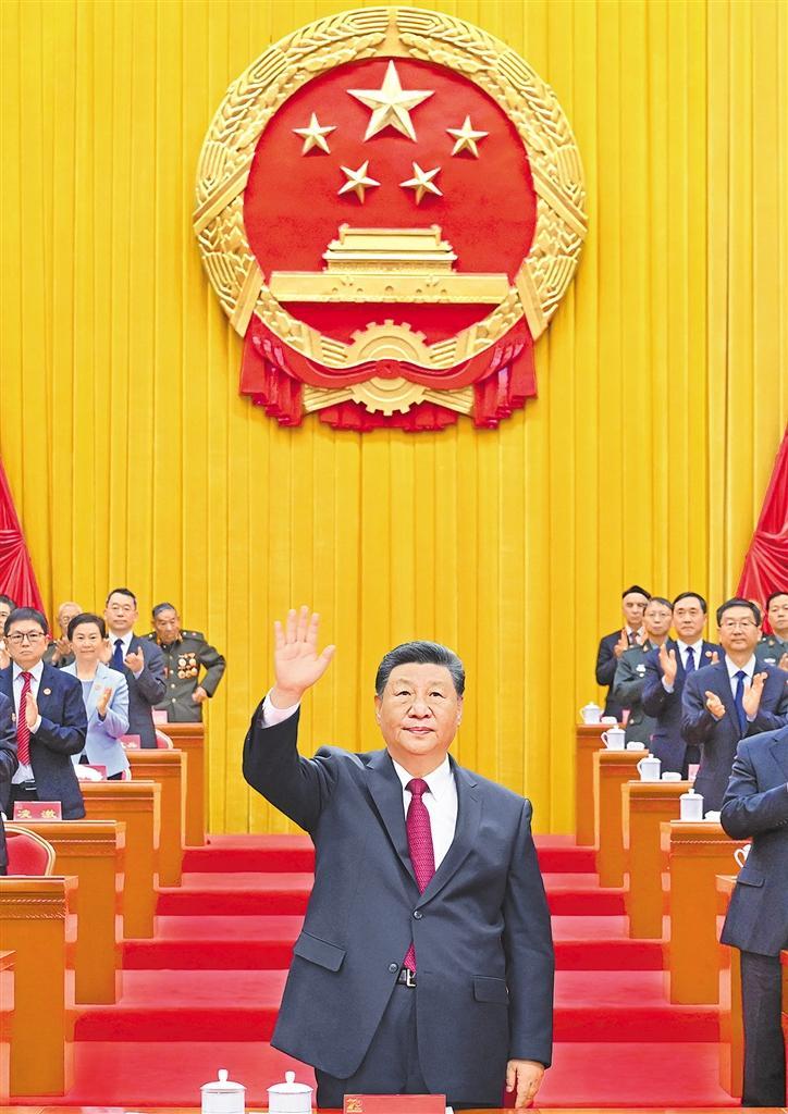 上午10时30分许,在欢快的乐曲声中,习近平等领导同志走上主席台,全场响起长时间的热烈掌声。